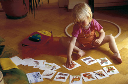Die Sprache rückt mehr in den Vordergrund, da die Kinder bereits Sätze bauen können, finden in der Stunde auch Gespräche statt.